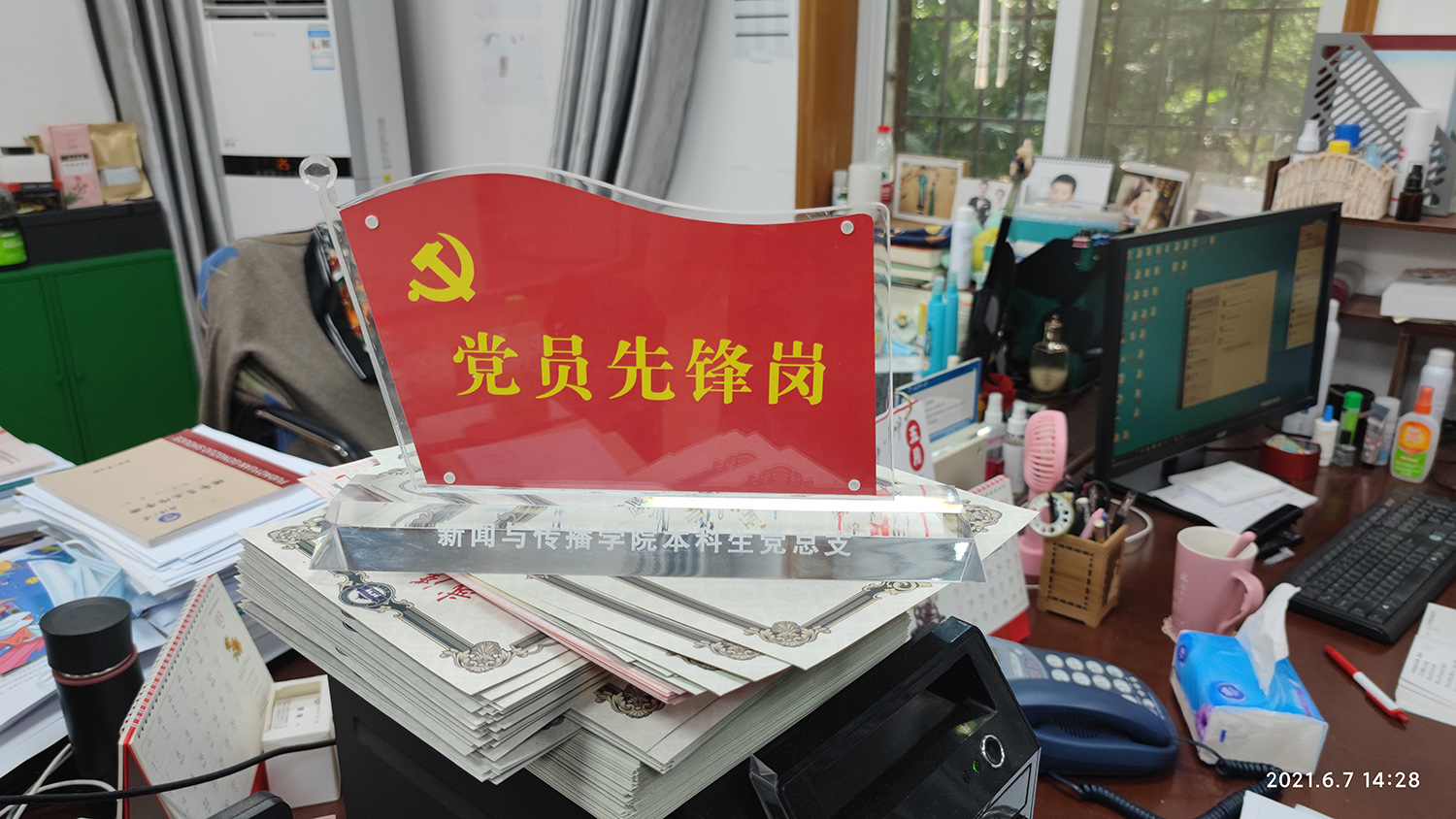 自5月31日学生党员先锋岗正式设立起,党员同志们积极到岗,主动承担日常事务,分工协作互相配合,帮助师生解决问题。